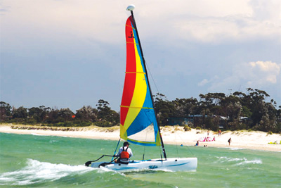 Designed especially for recreation and beginning sailors, the HOBIE WAVE is easy to use for the whole family. A remarkable plastic molding process makes this 13 foot catamaran lightweight and very durable. It is quick to assemble as well as fast and exciting to sail! [More details]